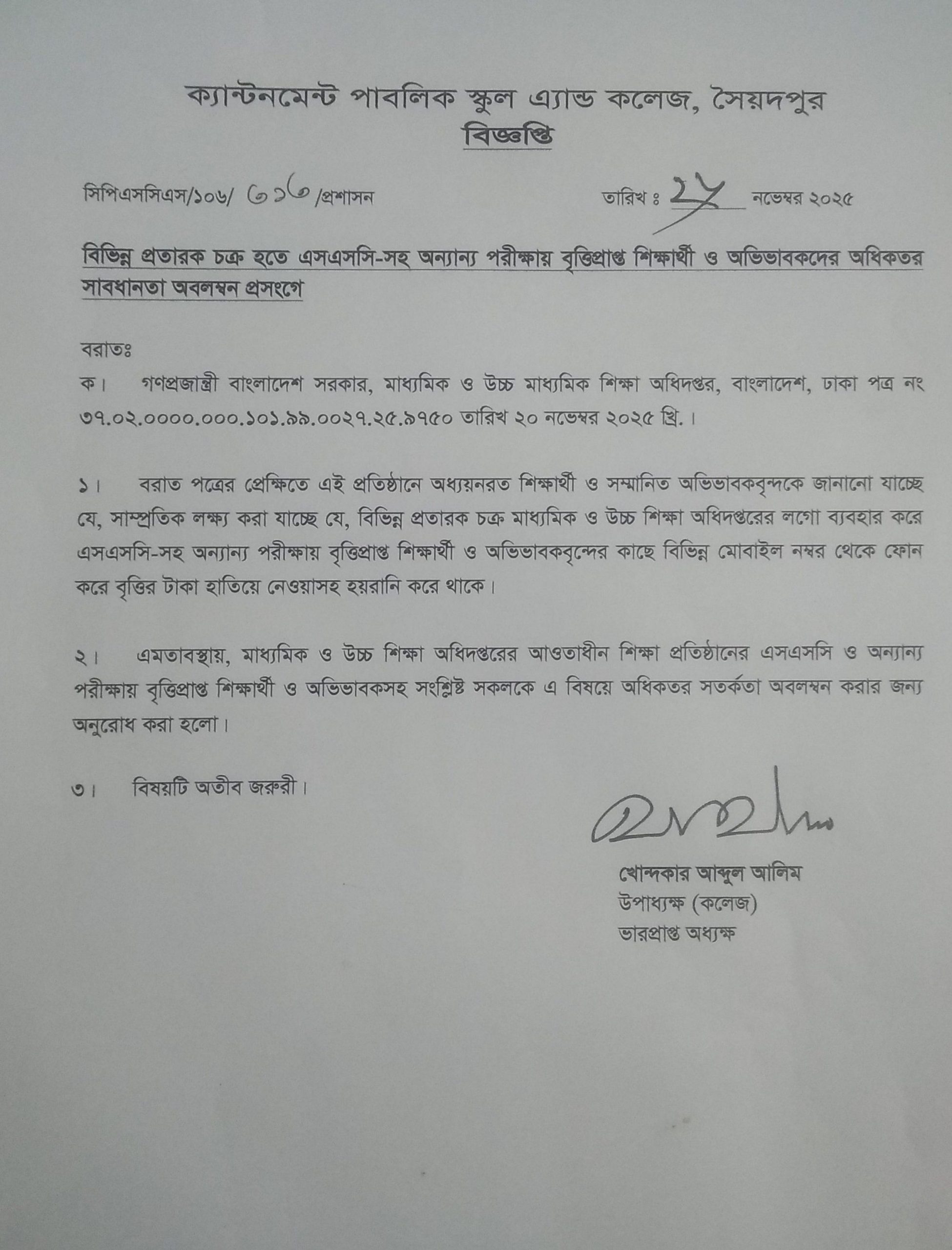Cantonment Public School and College, Saidpur, a beacon of education in northern Bangladesh, reflects the transformative power of learning. Founded under the leadership of Colonel S.M. Shamsuzzaman and officially inaugurated by Major General H.M. Ershad on April 4, 1979, the institution owes its foundation to the Bangladesh Armyâs visionary commitment. The first academic building’s foundation was laid by President Lt General Ziaur Rahman in 1980. Starting with 5 teachers and 176 students, CPSCS marked its academic journey with SSC exams in 1983 and HSC in 1986. Responding to evolving educational demands, the English Version School Section was launched in 1998 and the College Section in 2017.