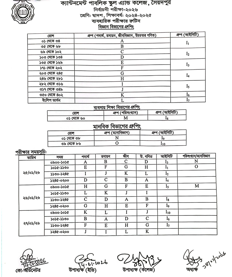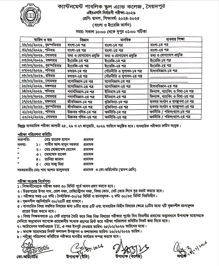 দ্বাদশ শ্রেণির নির্বাচনী ও ব্যবহারিক পরীক্ষার রুটিন-২০২৬