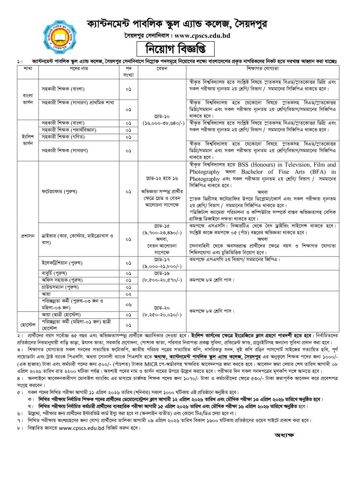 শিক্ষক,কর্মচারী নিয়োগ বিজ্ঞপ্তি-২০২৬